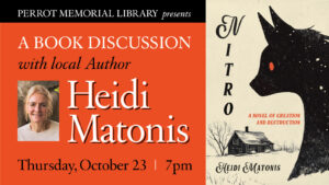 Author Heidi Matonis will discuss her new book, Nitro: A Novel of Creation and Destruction, on Thursday, October 23, at 7 pm, in our Program Room, Radcliffe Building, Perrot Memorial Library.