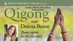 Donna Bunte of Donna Bunte Whole Health will teach a qigong class at Perrot Library on Monday, March 9th, from 9:15 to 10:15 am in the Program Room, Radcliffe Building.
