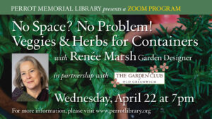 The Garden Club of Old Greenwich and the Perrot Memorial Library are thrilled to welcome Garden Designer Renée Marsh, via Zoom, for “No Space? No Problem! Veggies & Herbs for Containers,” on Wednesday, April 22, at 7 pm.