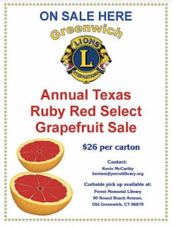 This year’s LIMITED EDITION inventory of 500 cases Texas Ruby Red grapefruit and 100 cases navel oranges can be purchased at $26 per case (Cash or check made out to Greenwich Lions Foundation).