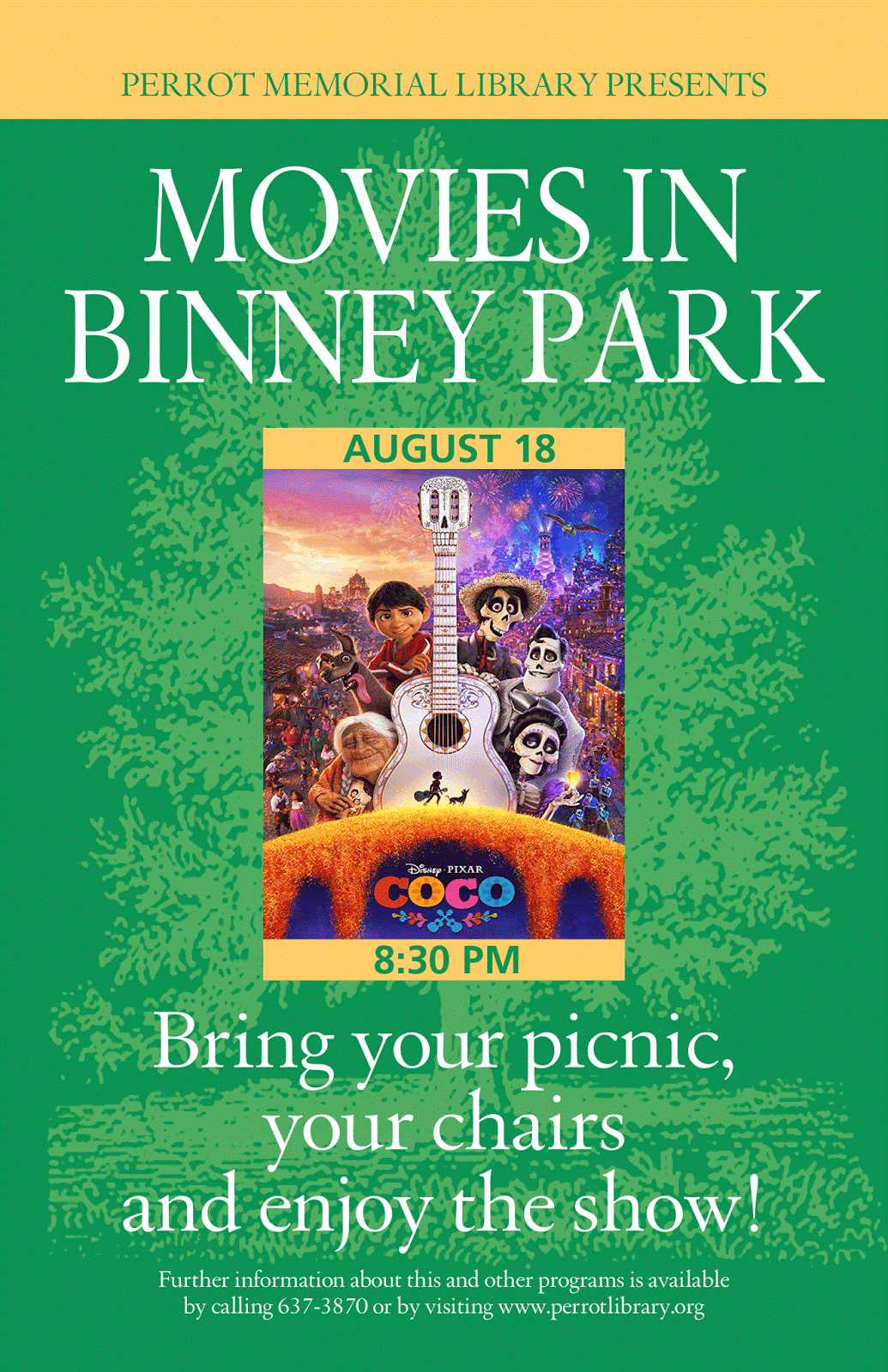 Perrot is pleased to present our twelfth annual series of Movies in the Park in Binney Park. Bring your picnic, your chairs, and enjoy the show!