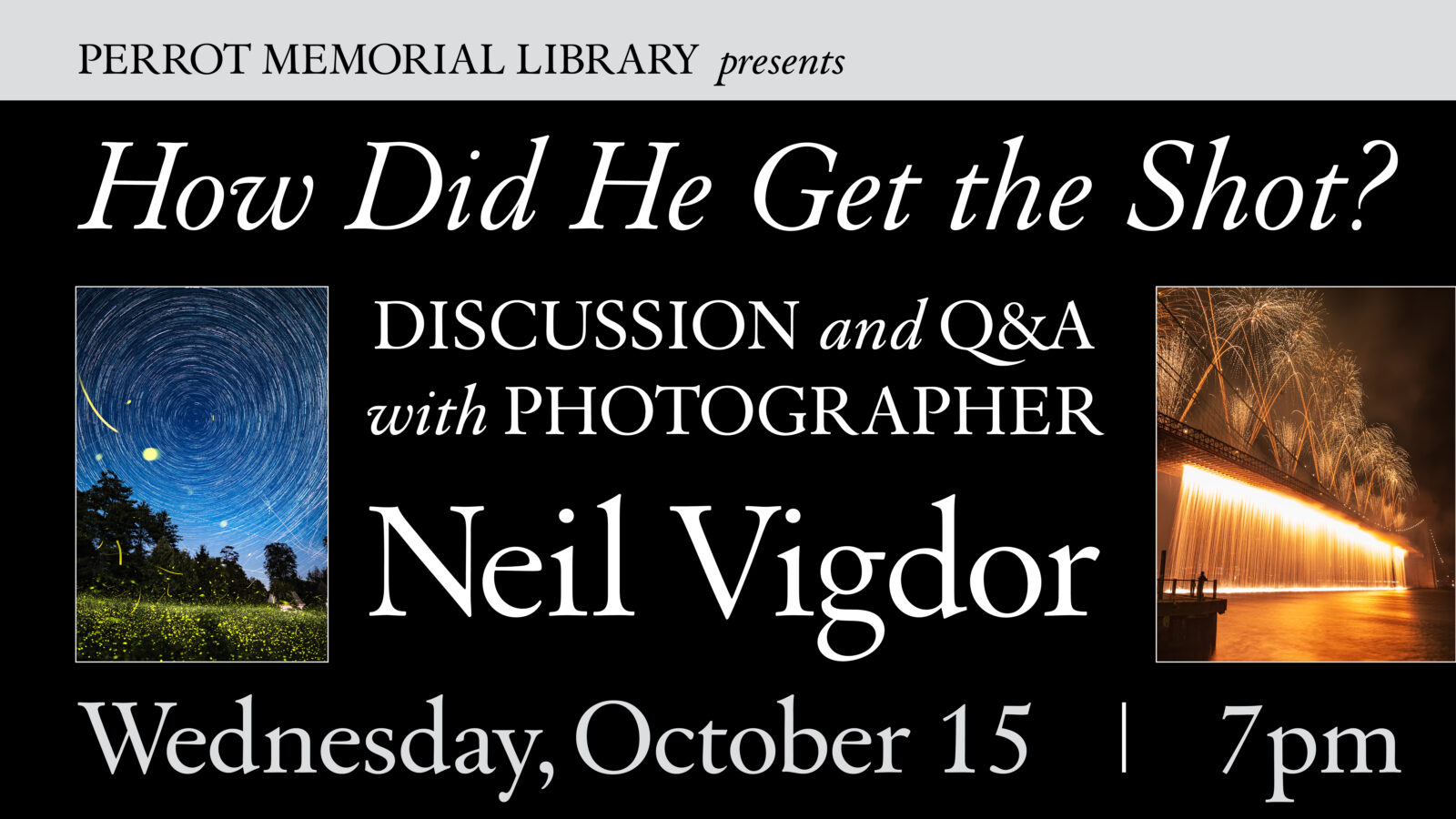 Join Old Greenwich resident Neil Vigdor of The New York Times for a discussion and Q&A about his photography craft, the demands of covering breaking news, and his journalism career, one deeply rooted in Greenwich. How did he get the shot? Come find out on Wednesday, October 15, at 7:00 pm in the Perrot Memorial Library Program Room. His photography will be on display in the Library throughout the month of October.