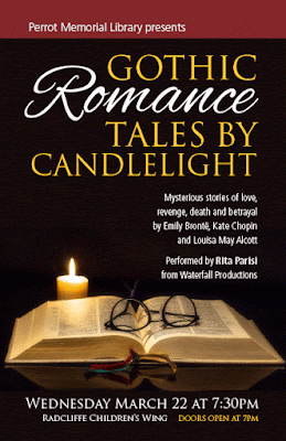 Mysterious stories of love, revenge, death, and betrayal by Emily Bronte, Kate Chopin, and Louisa May Alcott– performed by Rita Parisi from Waterfall Productions