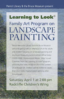 Perrot Library is pleased to welcome back Alice Scovell Coleman, a lecturer with the Learning to Look program, for an afternoon of art. This program will help us welcome spring by focusing on landscape painting and the Bruce Museum’s current exhibit Alfred Sisley (1839-1899): Impressionist Master. Ms. Coleman will bring the Sisley exhibit to life in the context of landscape art. Children will be invited to create their own Sisley-inspired pastel painting after the program.